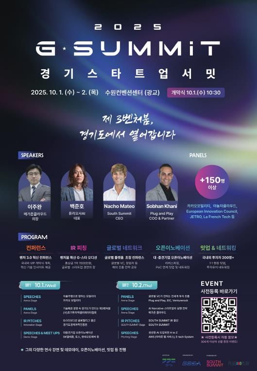 미디어라이프 중부신문 이종인 기자 | 국내 최고 수준의 글로벌 스타트업 투자 박람회인 ‘경기 스타트업 서밋(G-SUMMIT)’이 오는 10월 1일부터 2일까지 수원컨벤션센터에서 열린다.