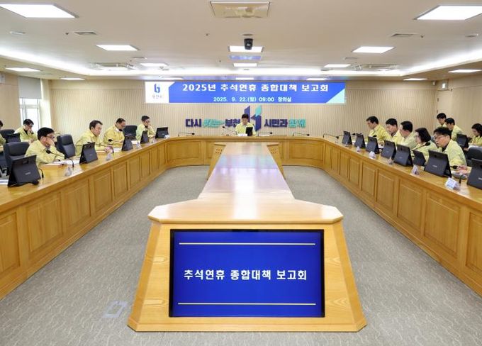 미디어라이프 중부신문 이종인 기자 | 부천시는 지난 22일 시청 창의실에서 조용익 시장을 주재로 부시장을 비롯한 국장과 부서장이 참석한 가운데 ‘2025년 추석 연휴 종합대책 보고회’를 열었다. 이번 보고회는 7일간 이어지는 추석 연휴를 앞두고 시민 생활 전반에 걸친 분야별 대책을 점검하기 위해 마련됐다.