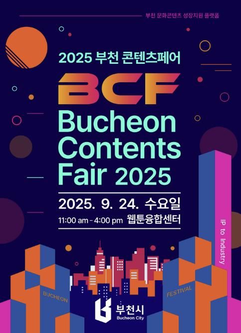 미디어라이프 중부신문 이종인 기자 | 부천시는 9월 24일 오전 11시 웹툰융합센터에서 ‘2025 부천 콘텐츠페어’를 연다. 이번 행사는 ‘From IP to Industry’를 주제로 우수 콘텐츠 지식재산권(IP)의 비즈니스 확장, 투자유치, 판로개척을 지원하기 위해 마련됐다.