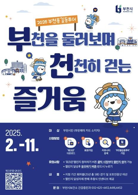 참여를 원하는 시민은 모바일 걷기 앱 워크온(WalkOn)에서 ‘2025 부천홍길동투어’ 커뮤니티에 가입하면 된다.