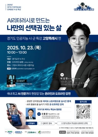 미디어라이프 중부신문 이종인 기자 | 고양특례시는 경기도와 경기과학원이 주최하는 ‘2025년 인공지능 시군특강(고양특례시편)’을 10월 23일 마두도서관에서 진행한다고 밝혔다.