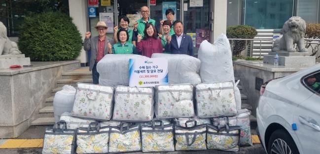 미디어라이프 중부신문 이도경 기자 | 포천시새마을회는 지난 7월 집중호우로 피해를 입은 수해 침수가구에 이불세트와 담요를 전달했다.