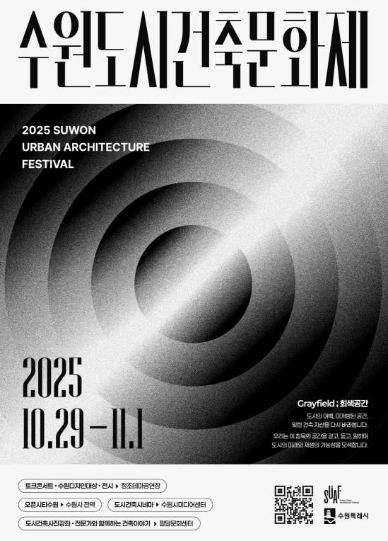 수원시 관계자는 “2025 수원도시건축문화제가 전통과 현대가 조화되는 도시 정체성을 확장하고, 수원의 건축문화가 한 단계 성장하는 계기가 되길 바란다”며 “많은 시민이 문화제에 참여해 도시를 새롭게 바라보고, 평소 접근하기 어려웠던 공간을 탐방하길 바란다”고 덧붙였다.