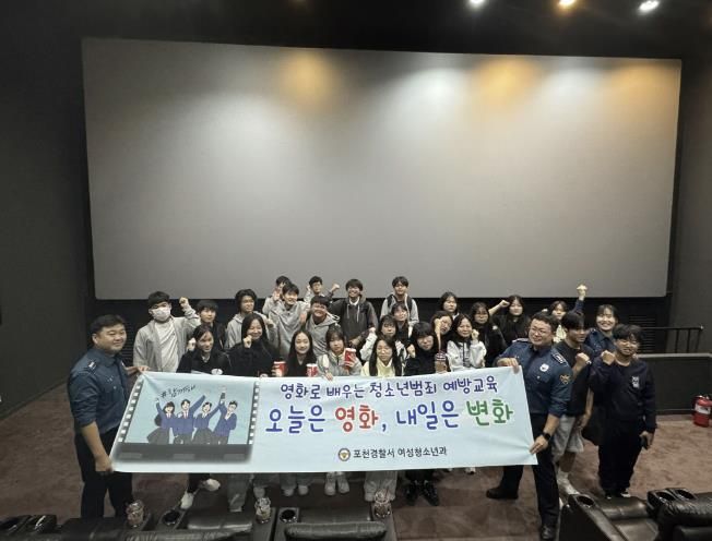 미디어라이프 중부신문 이도경 기자 | 포천시 청소년재단 포천청소년문화의집 청소년방과후아카데미는 지난 21일 씨지브이(CGV) 포천에서 포천경찰서 여성청소년과와 함께 청소년 대상 범죄예방교육 및 영화관람 활동을 실시했다.