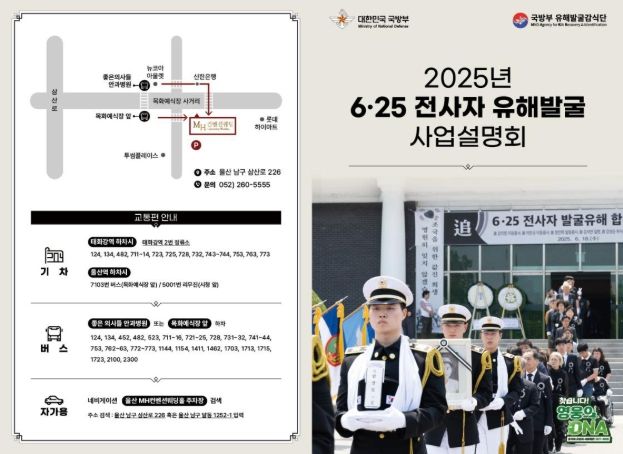 미디어라이프 중부신문 이도경 기자 | 국방부유해발굴감식단은 10월 22일 울산광역시 남구에서 2025년 하반기 6·25전사자 유해발굴사업 설명회를 개최했다.