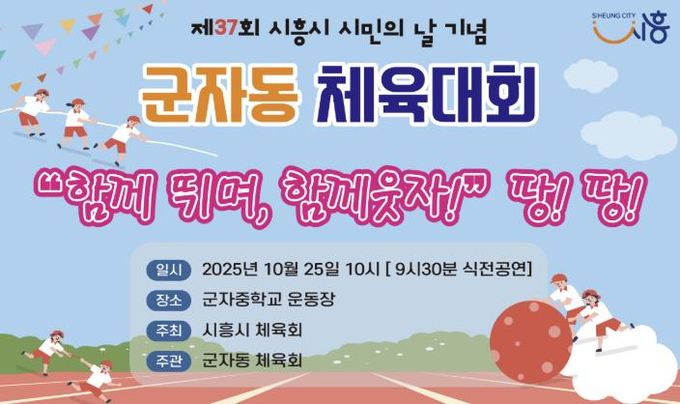 미디어라이프 중부신문 이종인 기자 | 시흥시 군자동 체육회는 제37주년 시민의 날을 맞아 오는 25일 군자중학교 운동장에서 ‘함께 뛰며, 함께 웃자’ 체육대회를 개최한다.