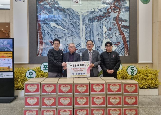 이에 대해 남기태 동장은 “지역의 어려운 이웃을 위해 따뜻한 나눔을 실천해 주신 주와함께교회 정진영 담임목사님과 신도분들께 깊이 감사드린다”며 “전해주신 물품은 도움이 필요한 가정에 소중히 전달하겠다”고 말했다.
