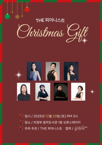 미디어라이프 중부신문 이도경 기자 | 의정부음악도서관은 12월 20일 오후 3시, 1층 오픈스테이지에서 ‘The 피아니스트 크리스마스 선물’ 공연을 개최한다.