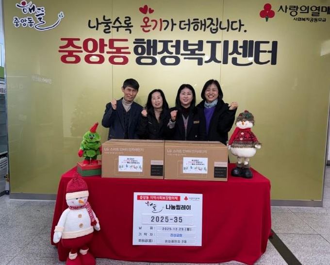 백경희 중앙동장은 “어르신들의 생활을 세심하게 살펴주신 진성교회의 따뜻한 나눔에 깊이 감사드린다”며 “이번 기탁은 새로운 공간에서 시작하는 경로당 어르신들께 큰 힘과 응원이 될 것”이라고 말했다.