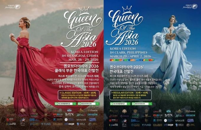 한국에서 서류심사 및 예심을 거쳐 연령대별로 2원화하여 진행하는 퀸오브더아시아는 올해 12회차로 작년 베트남 다낭에서 본선을 치른데 이어 올해에는 45세 이하 레귤러부문은 필리핀 클락에서 45세 이상 클래식 부문은 중국 상하이에서 본선을 각각 치르는 방식이다.