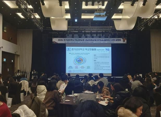 미디어라이프 중부신문 이종인 기자 | 경기도성남교육지원청은 5일 밀리토피아호텔에서 관내 초·중·고·특수학교 교원 및 지자체 관계자 등 300여 명이 참석한 가운데 ‘2026 경기공유학교 학교맞춤형 성남미래교육(숲에듀) 사업설명회’를 개최했다.