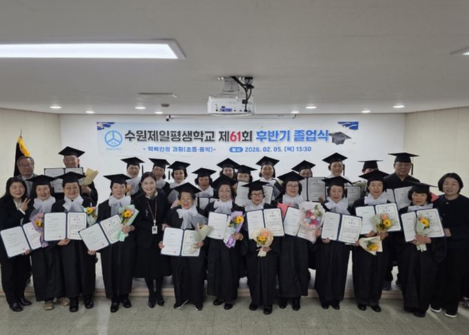 미디어라이프 중부신문 이종인 기자 | 수원제일평생학교는 2월 5일 오후 제61회 하반기 학력인정 졸업식을 진행했다. 졸업식은 교내 난타 동아리의 축하 공연으로 시작됐으며, 경기도교육청·수원교육지원청·수원시청 관계자들이 참석해 자리를 함께했다.