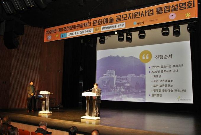 미디어라이프 중부신문 이도경 기자 | 포천문화관광재단은 지난 6일 포천반월아트홀 소극장에서 ‘2026년 문화예술 공모지원사업 통합설명회’를 개최했다.