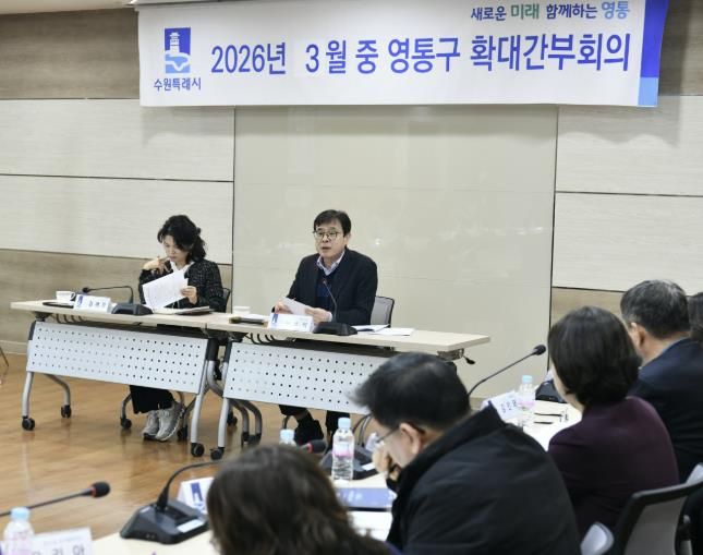 미디어라이프 중부신문 이종인 기자 | 수원특례시 영통구는 지난 24일, 구청 상황실에서 ‘2026년 3월 확대간부회의’를 개최하고, 구정 주요 현안을 집중 점검했다.