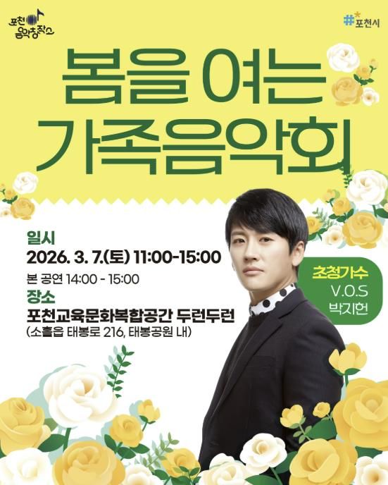 미디어라이프 중부신문 이도경 기자 | 포천시는 오는 3월 7일 포천시 교육문화복합공간 두런두런에서 ‘포천음악창작소, 봄을 여는 가족음악회’를 개최한다.