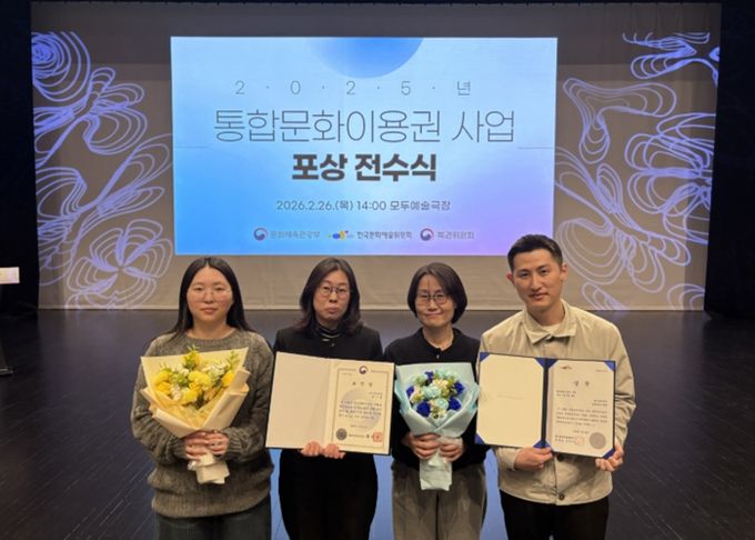 문화체육관광부와 한국문화예술위원회가 17개 시·도 지역 주관처를 대상으로 실시한 ‘2025년도 통합문화이용권 지역 주관처 운영 실적 평가’에서 통합문화이용권 기획 사업 수행 성과 우수 기관으로 평가를 받았다. 이에 지난 26일 개최된 ‘2025년도 통합문화이용권 사업 유공자 포상 전수식’에 참석하여 한국문화예술위원장상을 수상하고, 우수사례를 발표하는 자리를 가졌다.