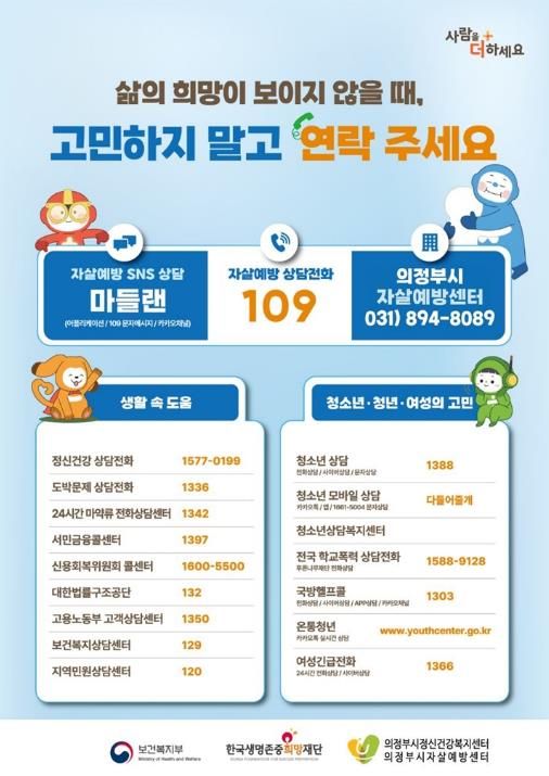 미디어라이프 중부신문 이도경 기자 | 의정부시 보건소는 봄철 자살률이 증가하는 자살 고위험 시기(3~5월)를 맞아 시민의 생명을 보호하고 정신 건강 인식을 높이기 위한 자살 예방 집중 홍보 활동을 실시한다.