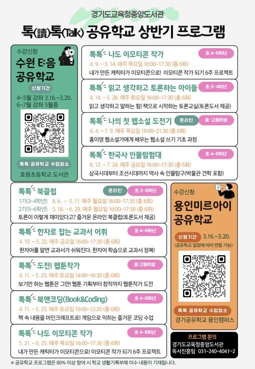 미디어라이프 중부신문 이종인 기자 | 경기도교육청중앙도서관이 학생들의 창의적 사고력과 진로설계 역량을 강화하기 위해 4월부터 7월까지 녪년 상반기 톡(讀)톡(talk) 공유학교’를 운영한다.