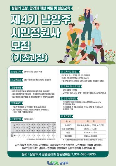 미디어라이프 중부신문 김민정 기자 | 남양주시는 ‘제4기 남양주시민정원사 양성교육(기초과정)’ 참여자를 모집한다고 24일 밝혔다.