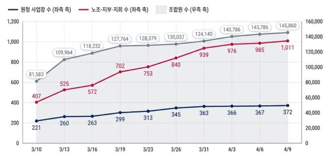 미디어라이프 중부신문 이건영 기자 | 고용노동부는 개정 노동조합법 시행(’26.3.10.) 이후 1개월여 간 현장상황 파악 및 지도를 위해 원청 사업장에 대한 하청 노조의 교섭요구 현황 등을 확인·집계해 왔으며, 법 시행 1개월이 되는 4월 10일, 그간의 집계현황을 발표하면서 운영 상황도 함께 점검했다.