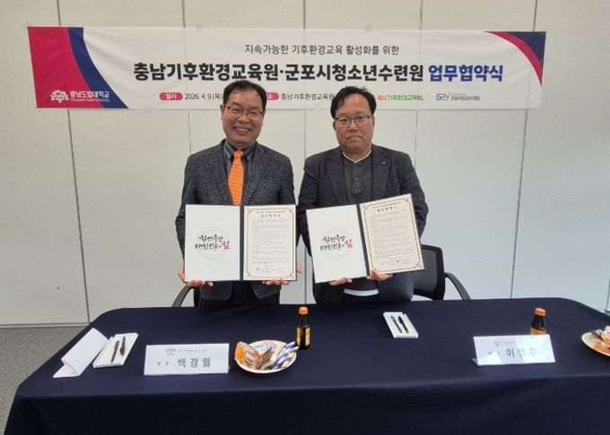 미디어라이프 중부신문 이종인 기자 | (재)군포시청소년재단이 운영하는 군포시청소년수련원(충남 청양)과 충남기후환경교육원(충남 청양)은 4월 9일, 미래세대의 지속가능 기후환경교육 활성화를 위한 업무협약을 체결했다고 전했다.