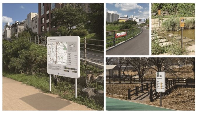 특히 국가표준 픽토그램을 기반으로 하천 환경과 이동 흐름을 고려해 이용자가 쉽게 길을 찾을 수 있도록 유니버설디자인 개념을 적용했다. 또한 주요 거점을 중심으로 하천 지도를 제작해 시설물 인지성과 동선 이해도를 높였다.