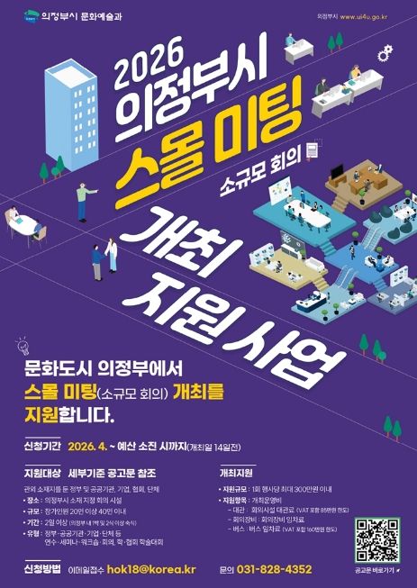 미디어라이프 중부신문 이석호 기자 | 의정부시는 관외에 소재지를 둔 기관 및 단체 등을 대상으로 ‘2026 의정부시 스몰미팅(소규모 회의) 개최 지원사업’을 추진한다.