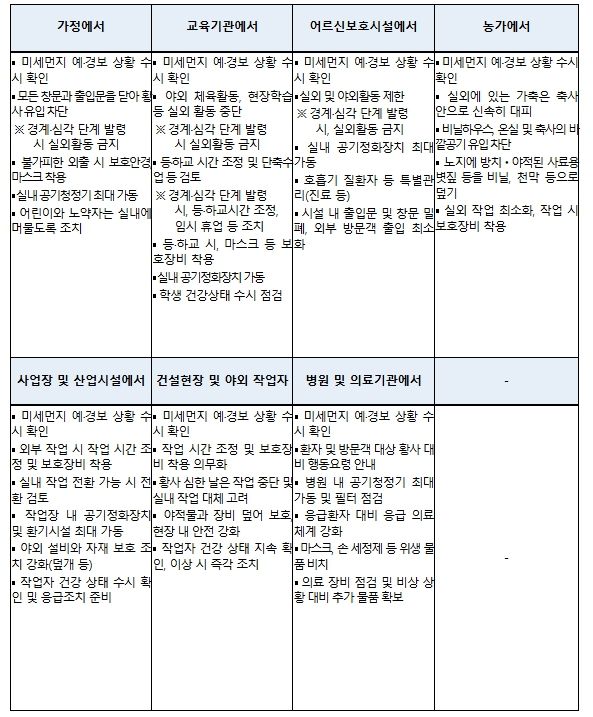 기후에너지환경부는 황사 위기경보 ‘관심’ 단계가 발령됨에 따라 관계 기관과 해당 지방정부에 곧바로 상황을 전파하고, ‘황사 재난 안내서(매뉴얼)’에 따라 철저하게 대응할 것을 요청했다.