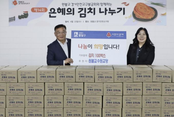 미디어라이프 중부신문 이종인 기자 | 수원시 팔달구은 원불교 수원교당으로부터 지난 22일, 김치 100박스를 기부받았다고 밝혔다.