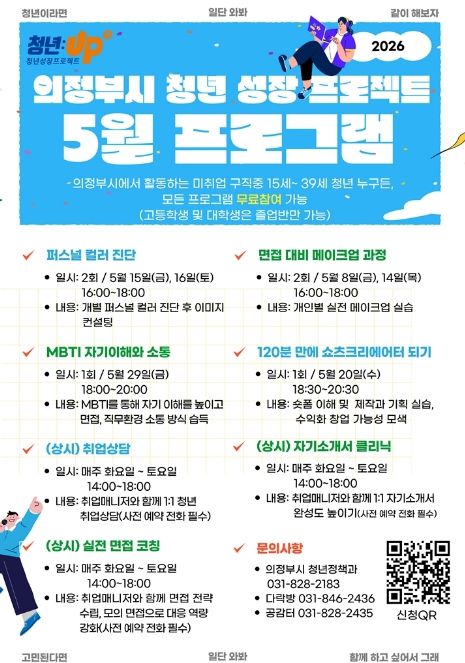 미디어라이프 중부신문 이석호 기자 | 의정부시는 미취업 청년의 취업 준비 역량 강화를 위해 ‘청년성장프로젝트’ 5월 프로그램을 운영한다.