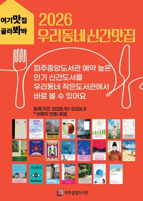 미디어라이프 중부신문 최부일 기자 | 파주시 중앙도서관은 지역 내 작은도서관 활성화를 위해 2024년부터 추진해 온 '우리동네 신간맛집' 사업을 지난 23일부터 관내 13개 작은도서관과 함께 본격 운영하고 있다.