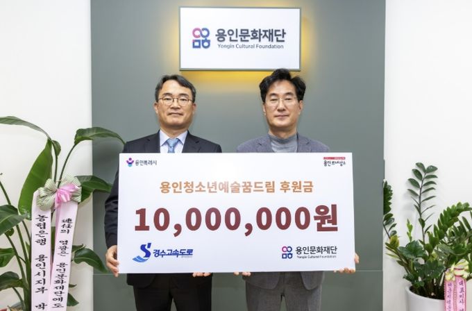 미디어라이프 중부신문 이종인 기자 | 용인문화재단은 지난 23일 경수고속도로(주)로부터 용인시 관내 청소년 예술 장학사업인 ‘용인청소년예술꿈드림’ 지원을 위한 기부금 1,000만 원을 기탁받았다고 밝혔다. 이번 후원은 용인서울고속도로를 이용하는 통행차량 1대당 1원씩 적립하고, 사회공헌예산을 추가로 편성해 지역사회 환원과 기업의 사회적 책임 실천 차원에서 추진됐다.