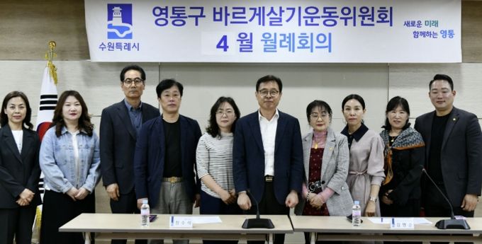 미디어라이프 중부신문 이종인 기자 | 수원시 영통구는 지난 24일 바르게살기운동 영통구지도위원회가 영통구청 상황실에서 각 동 위원장 및 총무 등 14명이 참석한 가운데 4월 월례회의를 개최했다고 밝혔다.