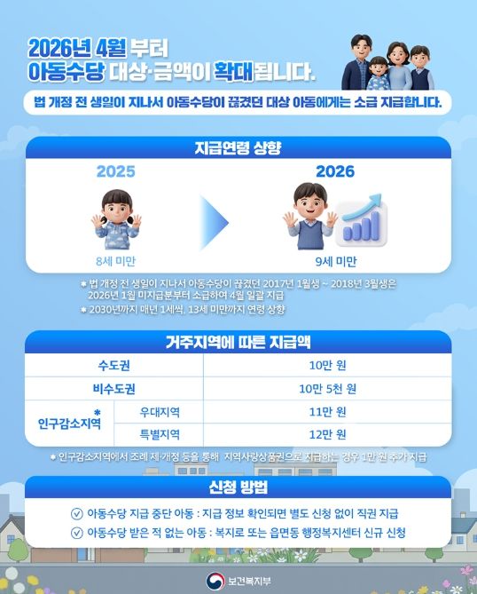 미디어라이프 중부신문 이도경 기자 | 2026년 4월부터 아동수당 대상·금액이 확대됩니다.