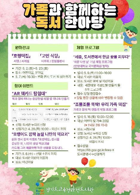 미디어라이프 중부신문 이종인 기자 | 경기도교육청과천도서관이 5월 가정의 달을 맞아 ‘가족과 함께하는 독서 한마당’을 운영한다.