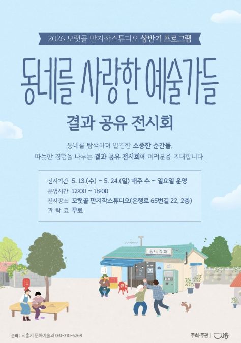 미디어라이프 중부신문 이종인 기자 | 시흥시는 오는 5월 13일부터 24일까지 문화재생공간 모랫골 만지작스튜디오에서 2026년 상반기 프로그램 ‘동네를 사랑한 예술가들’ 결과 공유 전시를 개최한다.