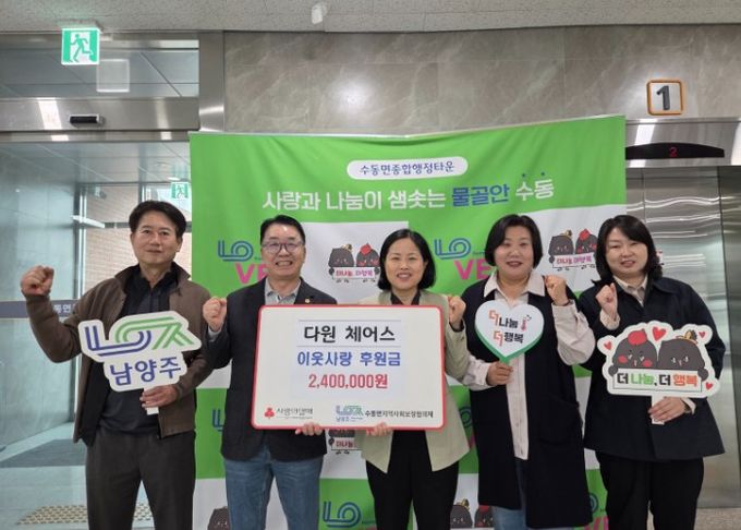 미디어라이프 중부신문 김민정 기자 | 남양주시는 지난 28일 수동면 소재 다원체어스가 수동면 어르신들을 위한 후원금 240만 원을 수동면 지역사회보장협의체에 전달했다고 29일 밝혔다.