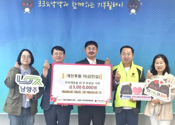 미디어라이프 중부신문 김민정 기자 | 남양주시는 29일 진접오남행정복지센터에서 김민섭씨가 취약계층 지원을 위해 후원금 300만 원을 전달했다고 밝혔다.