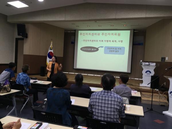 박수정 강사는 “주민자치센터는 주민이 참여하는 자치공간으로 지역사회와 관련한 삶의 문제를 지혜롭게 풀기 위한 합의문화를 만들기 위해 설립한 것이다.”며 “주민자치 기능과 함께 문화여가 및 지역복지, 지역공동체 기능의 활동영역에서 미래 지향적 목표 설정과 주민자치위원님들의 적극적인 사명감 의식이 필요하다”고 강조했다.