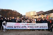 미디어라이프 중부신문 이도경 기자 | 의정부시의회는 지난 1일 병오년 새해를 맞아 지역 주민들과 함께 걸으며 희망찬 2026년을 시작할 수 있도록 ‘해맞이 산책, 하천길 따라 새빛정원까지’ 신년 해맞이 행사에 참석했다. 이번 행사는 ▲호원 생활체조광장에서 출발해 ▲신의교~신곡교 중간지점 벽천분수 ▲동오역 생활체조광장 ▲경기도청 북부청사역 인근 벽천분수를 거쳐 ▲신곡새빛정원까지 이어지는 릴레이 산책 코스로 진행됐다. 해맞이 행사에는 시민들과 함께했으며, 15개 동 통장협의회가 행사 준비와 운영에 참여해 중랑천, 부용천 산책로를 걸으며 새해에도 시민들과의 공동체 의식을 함양하고자 마련됐다. 김연균 의장을 비롯한 권안나 부의장과 의정부시장, 의정부시통장협의회 등이 참석했다. 행사에 참석한 의원들은 “희망과 도약을 상징하는 붉은 말의 해를 맞아 시민들과 첫 해맞이를 함께하게 되어 더없이 기쁘다며” “올 한 해 더욱 시민들의 목소리에 귀 기울이고 함께 공감·소통하며, 의정부시의 발전을 이끄는 의정부시의회가 되도록 노력하겠다”고 전했다.