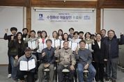 미디어라이프 중부신문 이종인 기자 | 수원특례시가 29일 화성사업소에서 ‘제2기 수원화성 마을장인 사업’ 수료식을 열고, 교육생 14명에게 수료증을 수여했다. 수원화성 마을장인 사업은 수원화성의 경미한 훼손을 시민이 보수할 수 있도록 국가유산수리기능자를 양성하는 사업이다. 수원시는 지난해 3월 경기문화유산돌봄센터와 마을장인 사업의 원활한 운영을 위한 업무협약을 체결하고, 제2기 수원화성 마을장인 사업 운영을 시작했다. 제2기 교육은 이론교육(6월~8월)과 실기교육(9월~10월), 특강으로 진행됐다. 수원화성의 역사와 가치, 설계철학과 구조, 한식 목구조·재료·보수 방법 등의 이론 교육을 했다. 실기교육은 경기문화유산돌봄센터와 함께 한식미장 이론과 실습을 병행했다. 이날 수료식에서 대한민국 한식미장 김진욱 명장이 특강을 했다. 또 수료생들을 대상으로 수원화성 남치 여장 해체보수공사 현장 견학 프로그램을 운영했다. 수료생들은 내년 4월 국가유산수리기능자 시험을 대비한 심화 교육에 참여한다. 수원시는 수료생 중 국가유산수리기능자 시험 합격자를 대상으로 마을 장인을 선발할 예정이다. 선정된