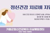 미디어라이프 중부신문 이종인 기자 | 가평군정신건강복지센터는 정신질환 치료 과정에서 발생하는 병원비 부담을 덜어주기 위해 치료비 지원사업을 운영중이라고 3일 밝혔다. 치료비 지원사업은 연령대와 치료 상황에 따라 △마음건강케어 △청소년‧청년 마인드케어 △어르신 마인드케어 등 3개 유형으로 나뉜다. ‘마음건강케어’는 조현병, 우울‧불안 등 정신질환으로 진단받은 주민이 대상이다. 질병코드 F20~F48로 진단받고 정신건강복지센터에 등록된 기준 중위소득 120% 이하 주민이라면 신청할 수 있다. 본인부담금과 본인 일부부담금을 포함해 연간 최대 36만원의 치료비를 지원한다. ‘청소년‧청년 마인드케어’는 15세부터 34세(1991~2011년생)를 위한 사업이다. 질병코드 F20~F48로 진단받고 최근 5년 이내(2022~2026년) 처음 진단받은 경우 신청 가능하며, 본인 일부부담금에 대해 1인당 최대 36만원을 지원한다. ‘어르신 마인드케어’는 65세 이상(1961년 이전 출생) 주민을 대상으로 한다. 우울증 등 질병코드 F32~F39로 진단받은 경우 본인 일부부담금에 대해 1인당 최대 36만원까지 치료