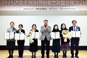 미디어라이프 중부신문 이종인 기자 | 파주시는 지난 3일, ‘지혜의 숲’대회의실에서 '2025년 지역사회보장협의체 성과공유회’를 개최했다. 이번 행사에는 대표협의체, 실무협의체, 분과위원, 읍면동 협의체 위원 등 150여 명이 참석했으며, 공공위원장 김경일 시장과 민간위원장 이보경 위원장이 공동으로 주관했다. 올해 성과공유회는 ‘함께라서 빛났던 2025년, 반짝이며 나아갈 2026년’을 주제로, 한 해 동안 지역 복지를 위해 헌신한 협의체 활동을 돌아보고, 현장의 성과를 확산하기 위한 취지로 마련됐다. 행사 전 참여자들이 작성한 붙임쪽지는 행사장 앞 성탄절 나무에 장식되어, 각자의 바람과 격려가 하나의 공동체적 상징으로 모아졌다. 성탄절 나무 쪽지 걸기 시연회는 올 한 해 서로 간에 다져온 협력의 의미를 되새기고, 다가오는 2026년을 향한 희망을 함께 공유하는 시간으로 이어졌다. 1부 행사에서는 협의체 위원 소개와 함께 유공자 24명 및 특화사업 우수 읍면동 3개소에 대한 표창이 진행됐으며, 공동위원장 두 명의 기념사를 통해 한 해의 활동을 마무리하는 알림말(메시지)이 전해졌다. 이어 활동 영