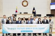 미디어라이프 중부신문 이종인 기자 | 용인특례시의회 의원연구단체 탄소중립연구소Ⅲ는 29일 의장실에서 영등포구의회 의원연구단체 ‘탄소중립과 지속가능한 문화도시 연구회’와 간담회를 열고 탄소중립 관련 정책연구 성과와 우수사례를 공유했다. 이날 간담회에는 용인특례시의회 유진선 의장을 비롯해 박희정, 신현녀, 박병민 의원과 영등포구의회 ‘탄소중립과 지속가능한 문화도시 연구회’ 이순우 대표 등 양 시·구 의원들이 참석했다. 이 자리는 ‘탄소중립연구소가 ‘2025 지방의정대상 정책연구부문 대상’을 수상한 것을 계기로, 연구 성과를 공유하고 지방의회 간 연구 교류를 강화하기 위해 마련됐다. 간담회에서는 ▲탄소중립 관련 우수 사례 조사와 정책 비교·분석 ▲용인시의 ‘경기 RE100 선도사업’ 추진 사례 ▲영등포구청 신청사 건립 과정과 ‘탄소중립연구소Ⅱ’ 연구주제인 공공기관 에너지 전환 로드맵 벤치마킹 ▲양 지자체의 탄소저감 정책 현황 공유 등이 논의됐다. 유진선 의장은 “지방의회가 기후위기 대응을 위한 정책연구와 교류의 중심이 되어야 한다”며 오늘 간담회가 용인과 영등포뿐만 아니라 전국 지방의회가 탄소중립 정책을 함께 고
