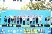미디어라이프 중부신문 이종인 기자 | 파주시는 지난 27일 금릉역 앞 중앙광장에서 열린 ‘제4회 파주 청년희망축제’가 시민들의 뜨거운 호응 속에 성공적으로 마무리됐다고 밝혔다. 올해 축제는 ‘파주청년, 다시 도약하다!(Paju Youth Again, Jump Up!)’을 주제로, 도약하는 청년세대의 열정과 활력을 시민과 함께 나누는 장으로 마련됐다. 이번 축제의 백미는 개막식과 함께 진행된 ‘파주 청년 비전선포식’이었다. 청년정책협의체 공동위원장은 무대에서 ‘청년이 뿌리내리는 도시, 파주’라는 비전을 선포하며, 청년과 지역사회가 함께 나아갈 미래의 방향을 제시했다. 특히 청년들이 직접 낭독한 선언문과 청년친화도시 지정을 위한 기념행사는 파주시의 확고한 의지를 대외적으로 알리는 계기가 됐다. 오후 2시부터 8시까지 진행된 이번 축제는 ▲사전공연 ▲청년 골든벨 ▲청년 가요제 ▲청년공간 특별강좌 ▲프리미엄 수제 맥주 시음 ▲청년창업가 플리마켓 ▲무료 체험공간 ▲대형 ‘파랑’ 포토존 등 다채로운 프로그램으로 꾸려졌다. 가요제 무대에서는 청년들의 끼와 열정이 빛났으며, 청년창업가 판매공간 및 수제 맥주