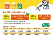 미디어라이프 중부신문 이종인 기자 | 파주시는 환경미화원 휴무 보장을 위해 추석 연휴 기간인 10월 4일부터 10월 6일, 10월 8일부터 10월 9일까지는 생활폐기물을 배출해서는 안 되며, 이 기간 동안에는 생활쓰레기 수거가 중단된다고 밝혔다. 단, 운정신도시 내 자동집하시설이 설치된 지역은 추석 연휴에도 평소처럼 집하시설을 통해 종량제봉투를 정상적으로 배출할 수 있고, 연휴 마지막 날인 10월 9일 18시부터는 쓰레기 배출이 가능하다. 시는 추석 명절과 아시아태평양경제협력체(APEC) 정상회의를 계기로, 행정안전부 주관 ‘대한민국 새단장 캠페인’에 동참해 9월 22일부터 10월 1일까지 중점 청소 및 단속 기간으로 지정했다. 이 기간 동안 추석맞이 대청소를 통해 청소 취약지역을 정비하고, 쓰레기 무단투기 예방을 위한 집중 단속을 실시해 연휴 기간 동안 청결한 환경을 유지할 계획이다. 또한 시는 연휴 기간인 10월 3일부터 10월 9일까지 시민들의 불편을 최소화하기 위해 상황반을 운영하고, 청소대행업체에서는 15개 기동반을 배치해 쓰레기 관련 불편 사항과 민원을 신속하게 처리할 계획이다. 특히