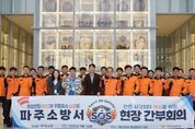 미디어라이프 중부신문 이종인 기자 | 파주소방서는 3월 27일 오전 10시, 파주시 국립민속박물관에서 현장 간부회의 'SOS(Spot On Safety)'를 처음으로 실시했다. 주요 소방대상물을 직접 방문해 재난 위험요소를 확인하고 개선방안을 도출하기 위해 마련된 이번 회의는, 서류 중심의 기존 방식에서 벗어나 현장에서 대상물의 실제 안전관리 상태를 점검하고 잠재적 위험요인을 사전에 발굴하는 새로운 형태의 현장 밀착형 회의다. 최근 관내 소방대상물은 첨단시설·박물관·대형 물류창고 등 복합화·대형화 추세가 뚜렷하다. 그러나 기존의 정형화된 보고 방식으로는 데이터와 현장 실태 간 괴리가 발생해 잠재적 위험요소를 사전에 파악하는 데 한계가 있었다. 파주소방서는 특히 대형화·복합화된 시설 증가로 재난 위험성이 커지는 상황에서 현장 중심 대응체계를 강화하기 위해 이 새로운 회의 방식을 기획했다. 이날 회의는 대상물 사전분석, 현장 확인, 관계자 의견 청취, 위험요소 토론 등 단계별로 진행됐다. 아울러 박물관 큐레이터의 안내로 전시시설과 수장고 등을 둘러보며 주요 유물과 시설 특성에 대한 설명을 듣는 기관