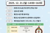 미디어라이프 중부신문 이종인 기자 | 김포시 통진도서관은 다가오는 연말을 맞아 ‘에코 크리스마스-리스 만들기’를 오는 12월 21일 오후 2시부터 운영한다. 이번 프로그램은 양말목, 플라스틱 병뚜껑, 장식 소품 등 폐자원을 활용한 친환경 크리스마스 리스 만들기로, 유아부터 성인까지 참여할 수 있다. ‘에코 크리스마스 리스만들기’는 12월 21일 오후 2시부터 연령대별로 총 3회차로 나뉘어 통진도서관 1층 문화교실에서 진행되며, 참여 신청은 12월 5일 오전 10시부터 통진도서관 홈페이지 문화행사 신청(모집/행사)페이지에서 김포시민 30명을 선착순 모집한다. 통진도서관 관계자는 “지역 시민들이 환경보호의 중요성을 되새기며 따뜻한 연말 분위기를 함께 나눌 수 있는 의미 뜻깊은 시간이 될 것”이라며 “시민들의 많은 관심과 참여를 바란다‘고 전했다.
