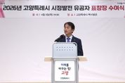 미디어라이프 중부신문 이종인 기자 | 고양특례시는 지난 9일 고양시 백석별관에서 ‘2026년 고양특례시 시정발전 유공자 표창장 수여식’을 개최하고, 지역 농업 발전에 기여한 후계농업경영인에 표창을 수여했다. 이번 표창은 고양시 농업 발전과 농업인 권익 향상에 기여한 유공자를 발굴·격려하기 위해 추진된 것으로, (사)한국후계농업경영인 고양특례시연합회 소속 회원 5명이 고양특례시장 표창을 받았다. 수상자는 ▲원동휘 회장 ▲한기웅 수석부회장 ▲장성석 수석단장 ▲이종철 사업부회장 ▲이성철 청년지원사업단장으로, 지역 농업 활성화와 후계농업인 육성, 농업 현안 대응 등에 기여한 공로를 인정받았다. 이날 수여식에는 농업인과 관계자가 참석해 수상자들을 축하하며, 지역 농업 발전을 위한 그간의 노고를 함께 격려했다. 이동환 고양시장은 “후계농업경영인은 지역 농업의 미래를 이끌어갈 핵심 주체”라며 “앞으로도 농업인의 사기 진작과 지속가능한 농업 발전을 위해 다양한 지원과 정책을 추진해 나가겠다”고 밝혔다.