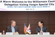 미디어라이프 중부신문 이종인 기자 | 이상일 용인특례시장이 13일 용인의 자매도시인 미국 텍사스주 윌리엄슨카운티의 대표단과 만나 양 도시의 발전을 위한 협력 방안을 논의했다. 이날 시청 접견실에서 이 시장은 스티븐 스넬(Steven Snell) 윌리엄슨카운티장과 러스 볼즈(Russ Boles) 윌리엄슨카운티 커미셔너, 데이브 포터(Dave Porter) 윌리엄슨카운티 경제개발파트너십 전무이사를 만나 경제와 산업, 교육 등 다양한 분야에 대해 의견을 나눴다. 이날 이상일 시장을 만난 스티븐 스넬 윌리엄슨카운티장은 전임자인 빌 그래벨(Bill Gravell) 윌리엄슨카운티장에 이어 지난 4월 신임 윌리엄슨카운티장으로 취임했다. 이상일 시장은 “양 도시는 도시 이름을 붙인 명예도로명을 부여하면서 우정을 쌓고, 교류협력을 활발하게 하고 있다”며 “윌리엄슨카운티 대표단과 텍사스 주립대학교 관계자들이 용인에 있는 단국대학교 관계자를 만나 협력관계 구축에 대한 논의를 진행하는 것으로 알고 있는 데 양 도시에 있는 대학이 교류하는 것은 매우 뜻 깊은 일”이라고 말했다. 이 시장은 “윌리엄슨카운티에는 첨단산업